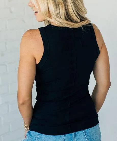 The Ribbed Patch Tank features small ribbing and a crew neck for a slim and lightweight fit. Its back patch applique adds a touch of fun and quirky style to this must-have tank, making it perfect for any casual occasion. Catch plenty of compliments with this playful tank!